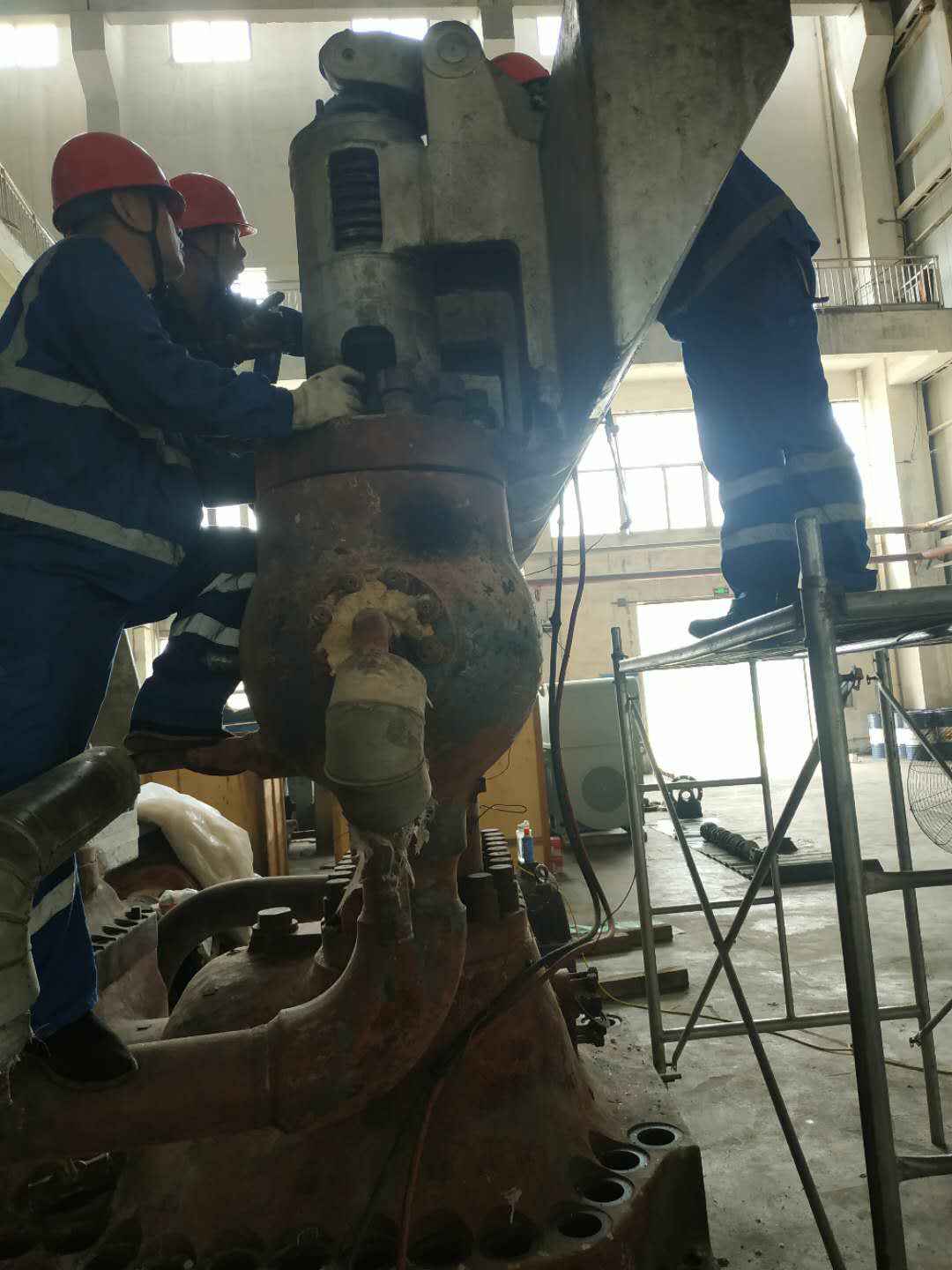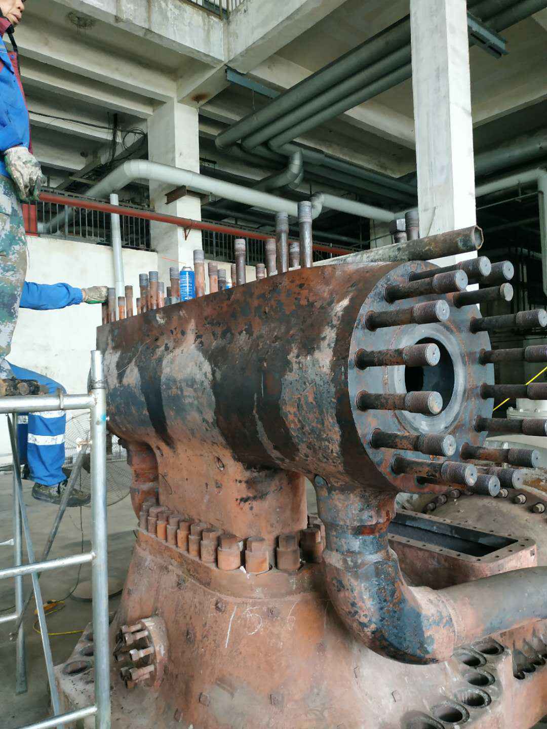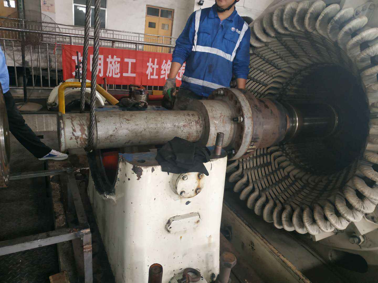 由贵阳伟平食材供应链管理有限公司承建的山东海能化学有限责任公司机组B15MW背压式汽轮机组(原 C25抽汽凝汽式机组)大修工程现已完成凝结水泵、油站检修工作,发电机前后轴承座基础垫铁研磨工作,目前蒸汽室螺栓的拆卸工作及发电机定子与转子的清理工作陆续启动,下气缸吊隔板工作也在稳步进行中。