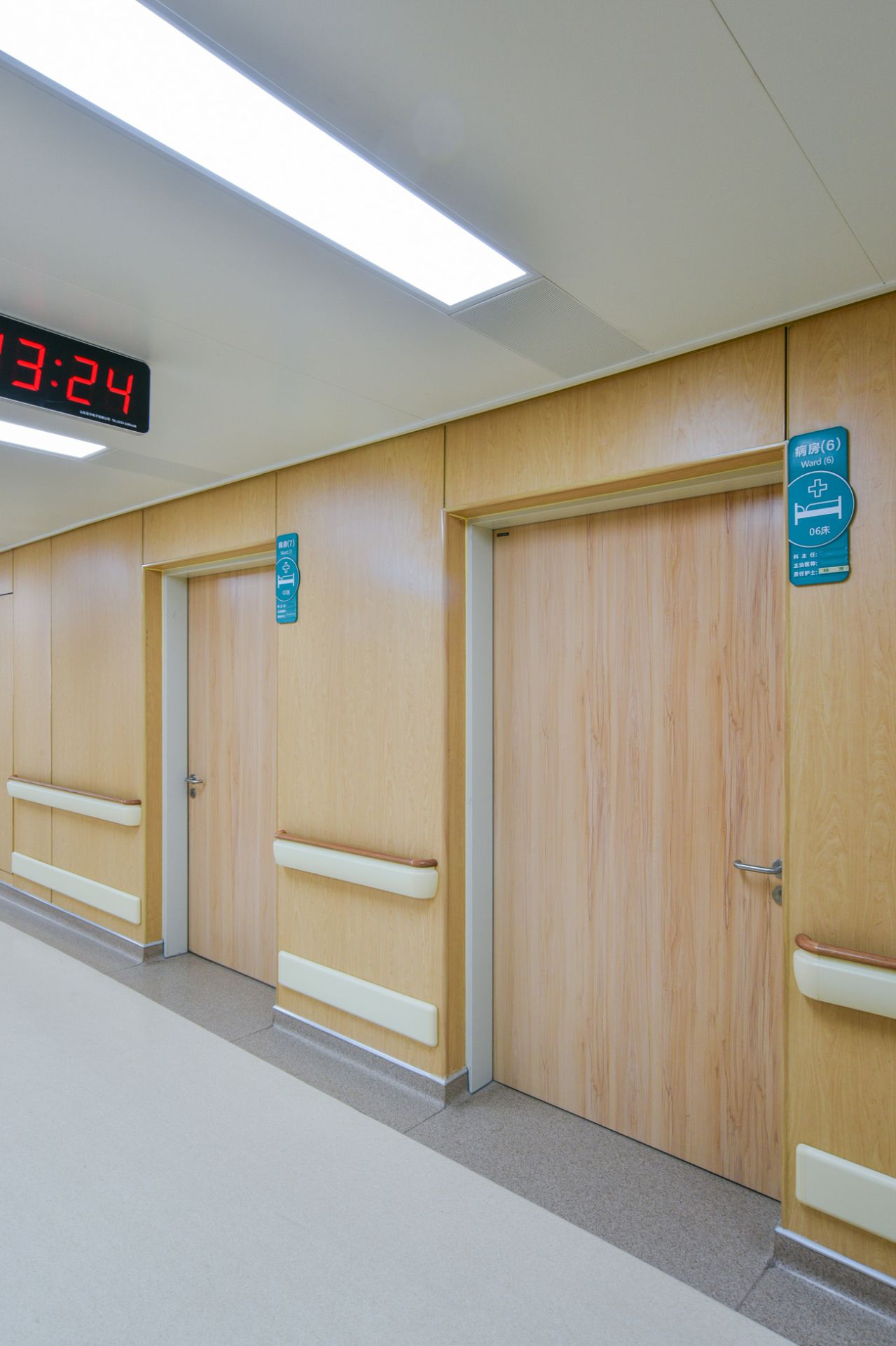 海口徐凡物业维护管理有限公司为山东省立妇产医院新建大楼项目中提供医疗环境整体解决方案,其中包含金属木纹病房门、金属诊疗室门、金属木纹双开门等。打造高品质人性化的医疗空间。