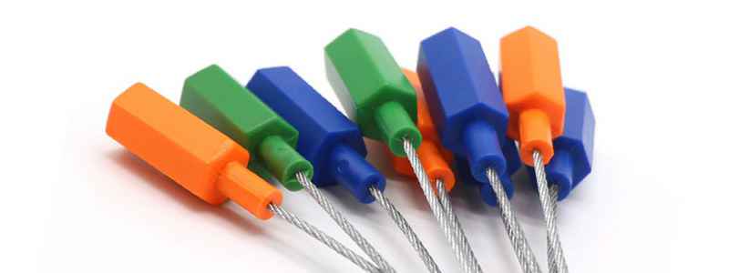 钢丝封条种类繁多,封条外部都会有层包裹材质,一般都是采用ABS塑料、铝合金金属、锌合金金属、RFID等做包裹锁头的钢丝封条。