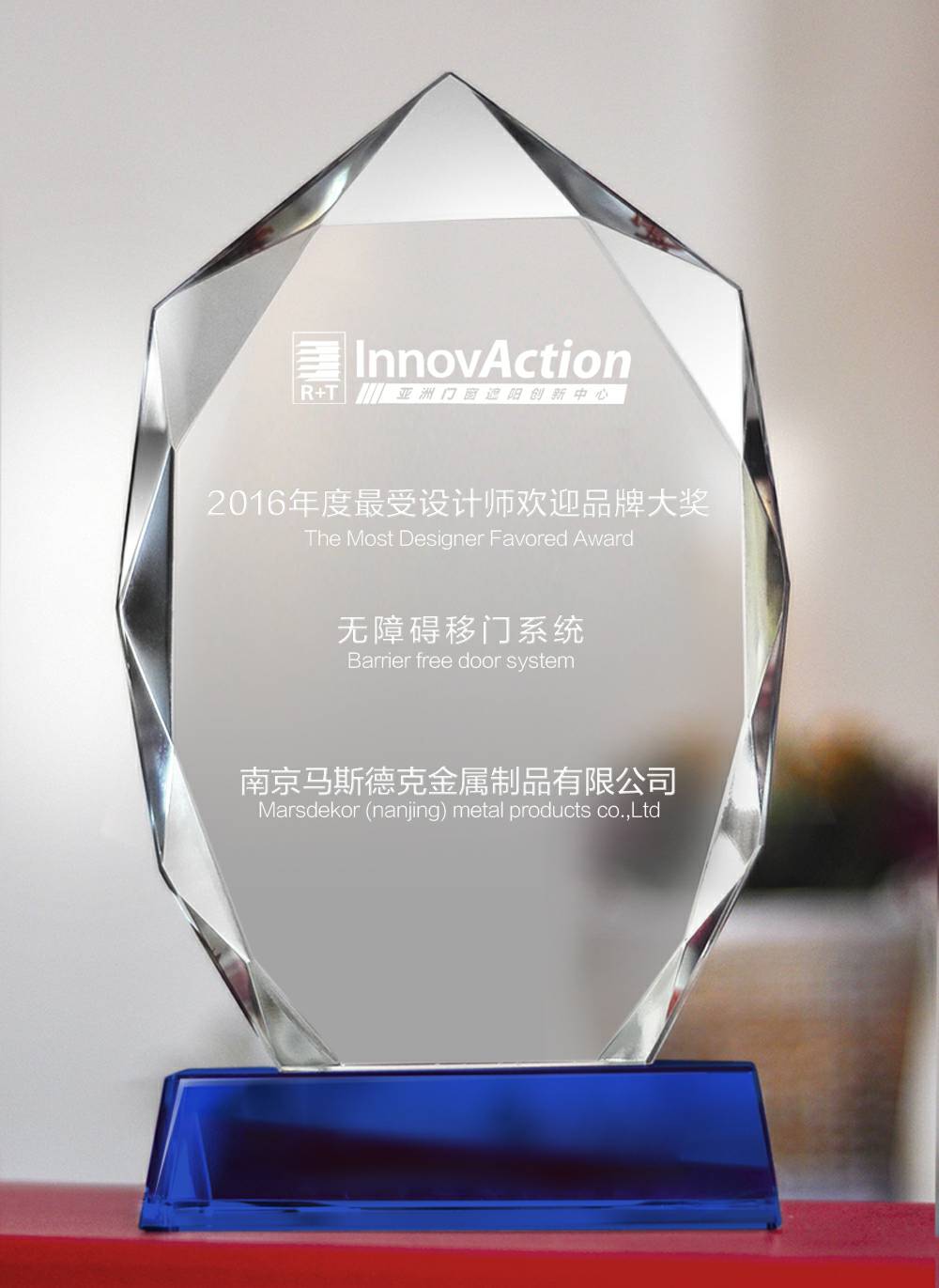 海口徐凡物业维护管理有限公司荣获2016R+T ASIA最受设计师欢迎品牌大奖。